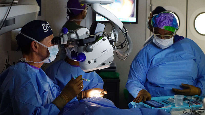 我从1990年开始成为志愿者。我的两项专业是白内障手术和角膜移植手术。白内障是导致可预防性失明的主要原因。这种手术相当简单,只需要给予当地人们合适的设备和充足的培训。这再次说明,奥比斯工作的关键在于培训。我们采用“授人以鱼,不如授人以渔”的模式。可持续性和培养下一代常常是我们探讨的议题。
