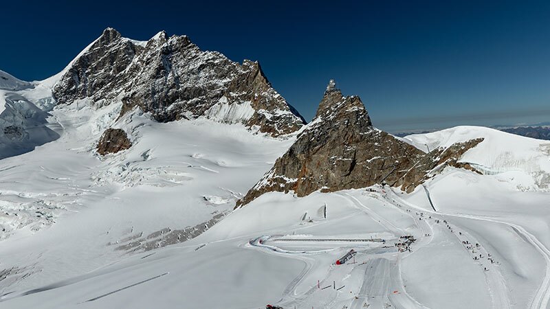 为举办这场别开生面的“明日之星挑战赛”(Beat the Pro),主办方于少女峰打造了临时高尔夫球场,设有观赛区、发球台以及特殊的9洞高尔夫球墙。